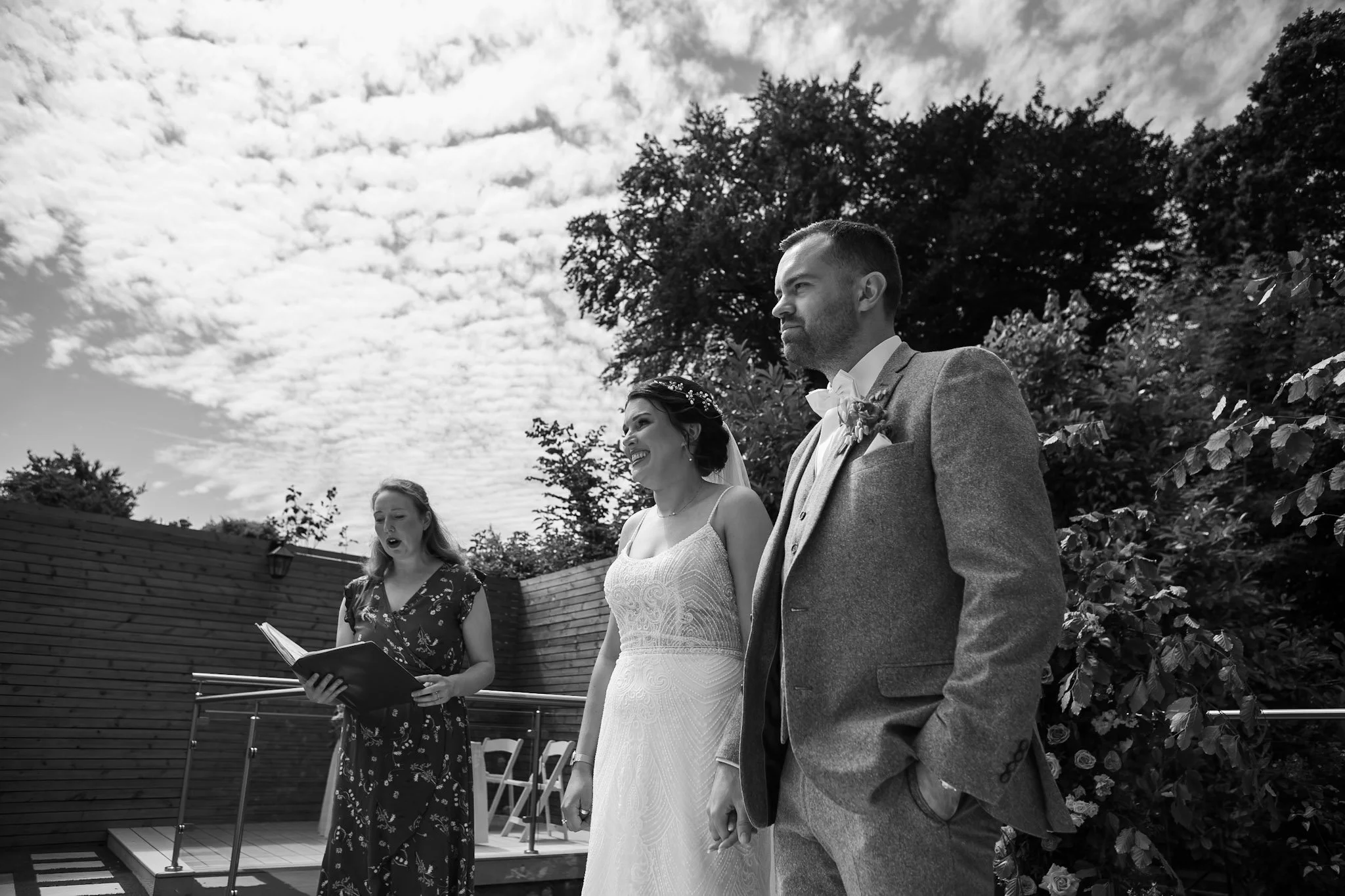 We want to say a massive thank you for the ceremony. We had so many compliments and a lot of people said to us that they’d never seen that kind of humanist ceremony and loved how personal it was. We loved the process of getting the script, you made us feel really comfortable and we felt that it meant the script was really specific and touching. We also really appreciated the opportunity to edit it afterwards and loved the touches of asking the guests to make a vow and including our personal thoughts about the other. It was very reassuring to have you at the walk through with us so that you knew the venue and we appreciated your guidance on the day too, you were a massively reassuring presence. I thought your presentation was great. We loved the pace and the humour. It was a really magical day, thank you for helping to make that happen.